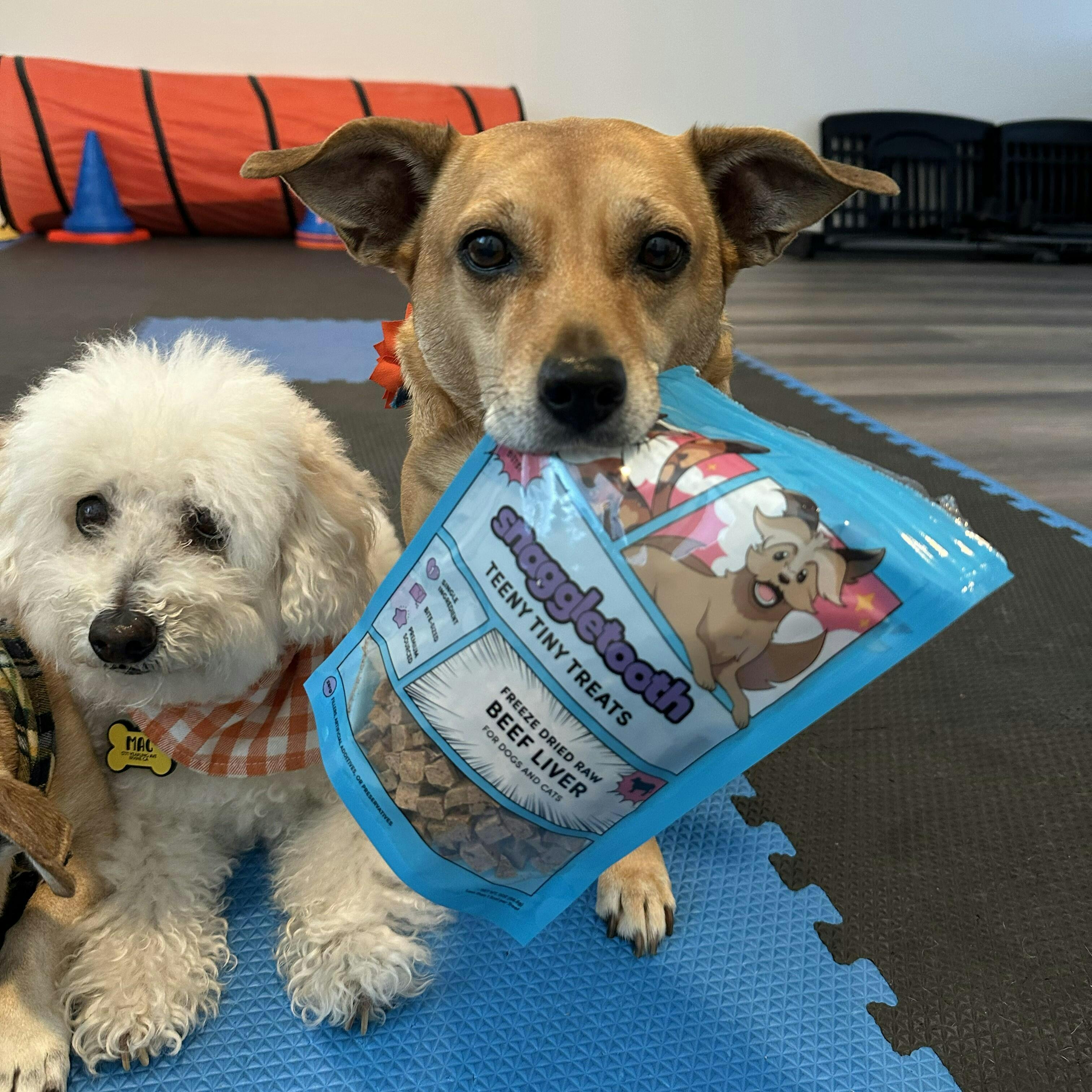 Our senior no-tooth-having dog loves her Snaggletooth Tiny Treats! It can be hit or miss with treats recently, and we can tell these are a big hit.