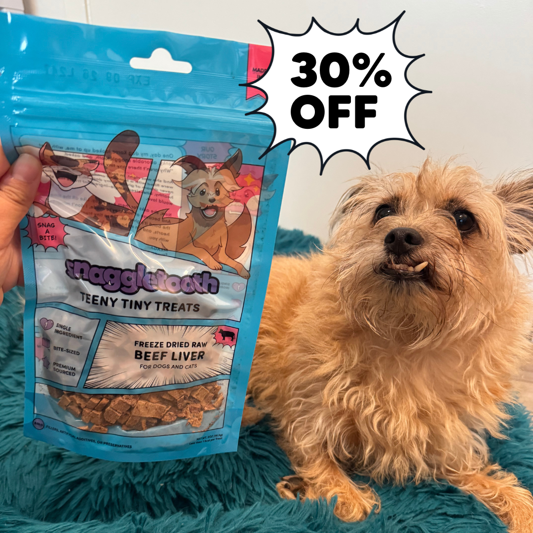 Life's tough, we know it. Sometimes our treat bags get a bit crushed during the hustle and bustle of everyday life. That doesn't stop these treats from being extra tasty -we recommend to use these treats as a high value meal topper or mix-in to encourage your best friend to eat. It's everything you love from our teeny tiny treats, just a little more crumbly, and at a great price to you! *For a limited time only - until supplies last.