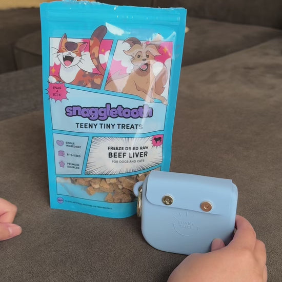 Our Teeny Tiny Treats have found their dynamic duo: the Snap Dog Treat Pouch from our friends at Sunny Tails.
